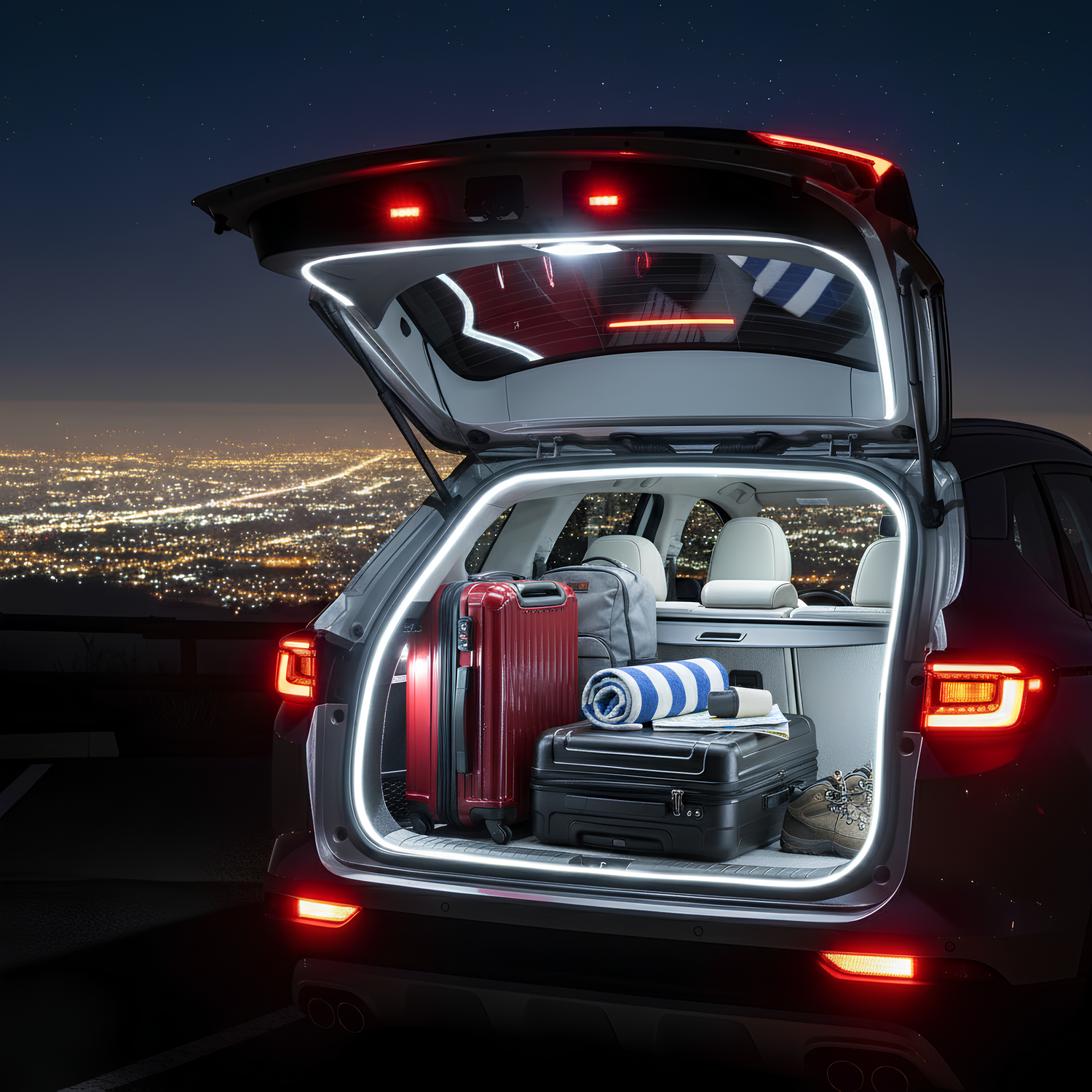 VIBESPACE LED zapewnia jasne, eleganckie i zawsze gotowe oświetlenie bagażnika — gdziekolwiek jesteś, o każdej porze.